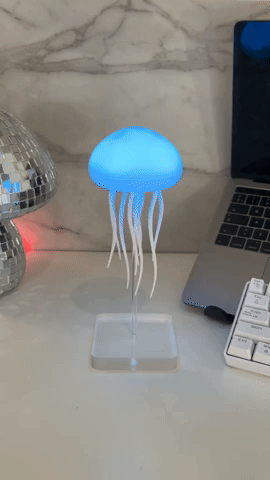 Breng rust, kleur en sfeer in je kamer met de Jelly Glow, de lamp die lijkt te leven. De zachte lichtkleuren veranderen langzaam, terwijl de sierlijke tentakels rustig meebewegen. Perfect voor op je bureau, nachtkastje of als eyecatcher aan het plafond.